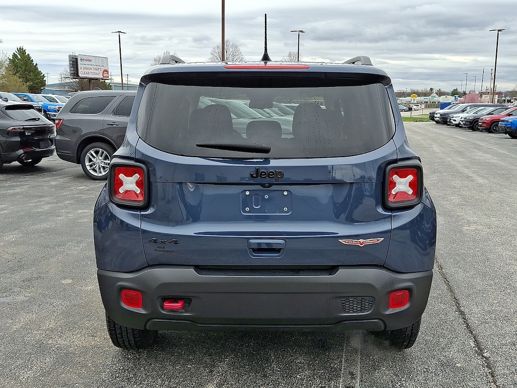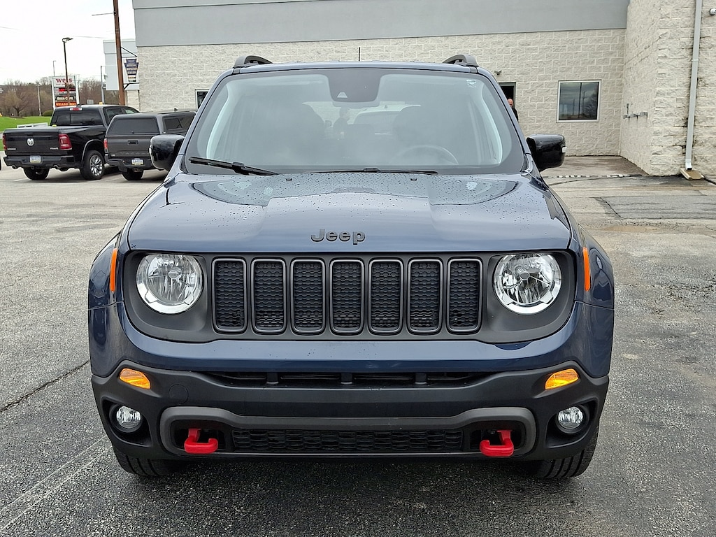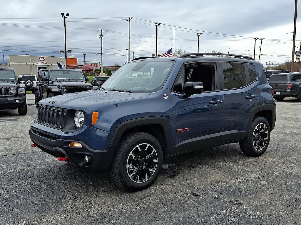 2023 Jeep Renegade Trailhawk.The 2023 Jeep Renegade Trailhawk is a rugged adventure-ready version of the Renegade that packages Jeeps signature off-road capability into a compact footprint. Built for drivers who want to go beyond paved roads the Trailhawk trim adds enhanced terrain capability without sacrificing everyday usability.Under the hood the 2023 Renegade Trailhawk typically features a responsive engine paired with a smooth automatic transmission and Jeeps available 4Ã4 system with Selec-Terrain traction management. With its raised suspension skid plates and all-terrain tires the Trailhawk is ready for gravel roads dirt trails and light rock crawling with confidence.On the outside the Trailhawk wears unique styling cues including bold front and rear bumpers Trailhawk badging red tow hooks and a rugged stance that hints at its adventure-focused nature. Compact dimensions make it easy to maneuver in tight city streets or on winding backroads alike.Inside the cabin offers supportive seats durable materials and modern technology such as a touchscreen infotainment system with smartphone integration (Apple CarPlay and Android Auto) Bluetooth connectivity and available navigation. Practical storage solutions and flexible cargo space make it equally suited for weekend gear or grocery runs.Whether you're tackling trails beach roads or daily drives the 2023 Jeep Renegade Trailhawk combines Jeeps legendary capability with compact practicality for fun and confidence on every journey.Our car buying experience is designed to be simple transparent and stress-free. From the moment you walk in our friendly and knowledgeable team focuses on listening to your needs and guiding you every step of the way without pressure. We believe in clear pricing honest communication and efficient processes so there are no surprises. Our goal is for every customer to leave feeling confident respected and excited about their new vehicle.